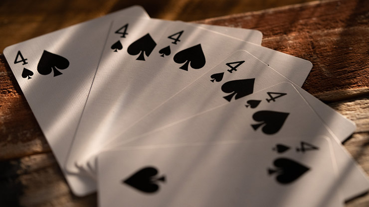 You start by showing five blank-faced cards and one Four of Clubs. The Four of clubs is brushed against two of the blank cards and they change to Fours! This is repeated with the other blank cards! At the end of the routine each and every card has turned into the four of clubs. And to top things off, ALL of the cards are shown FRONT AND BACK!