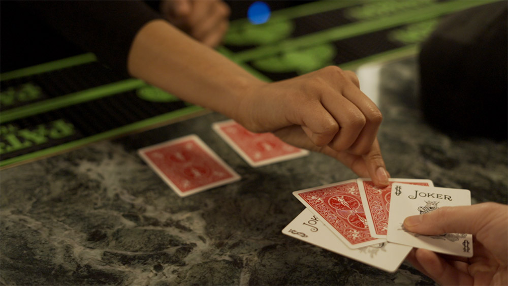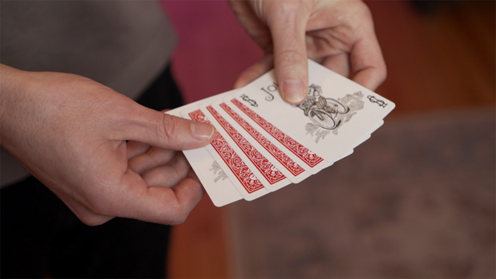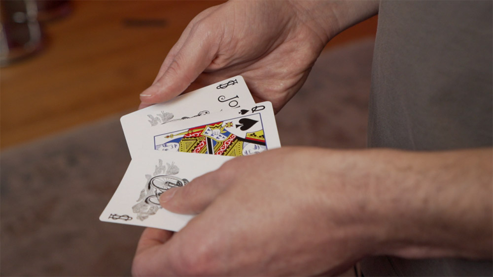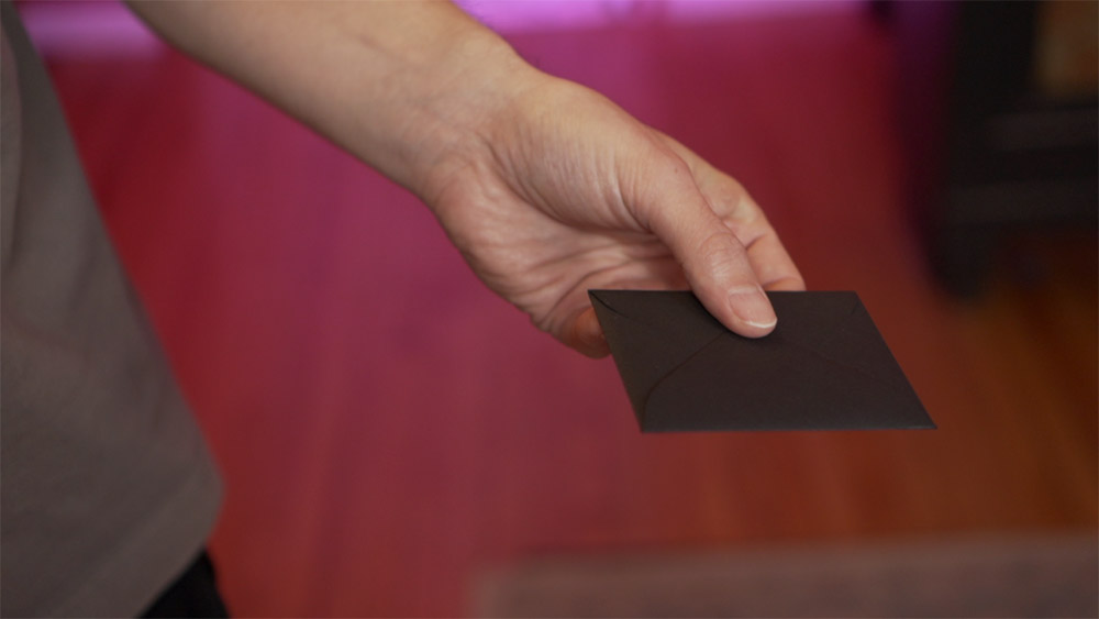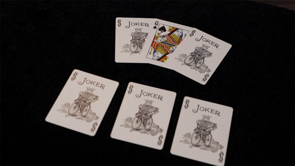 You introduce a small black envelope and tell your audience that inside is a face-down Queen between two face-up Jokers. All they have to do is name the suit they think it is. Your audience freely names any suit they like. The packet is taken out, and it turns out that four face-down cards are between the Jokers. Your audience points to the three face-down cards they think are not the named Queen, and when you turn over the remaining face-down card, it’s the exact Queen they named. Then, in impossible kicker ending, you—or even the spectators—turn over the other cards to show that they’re Jokers.