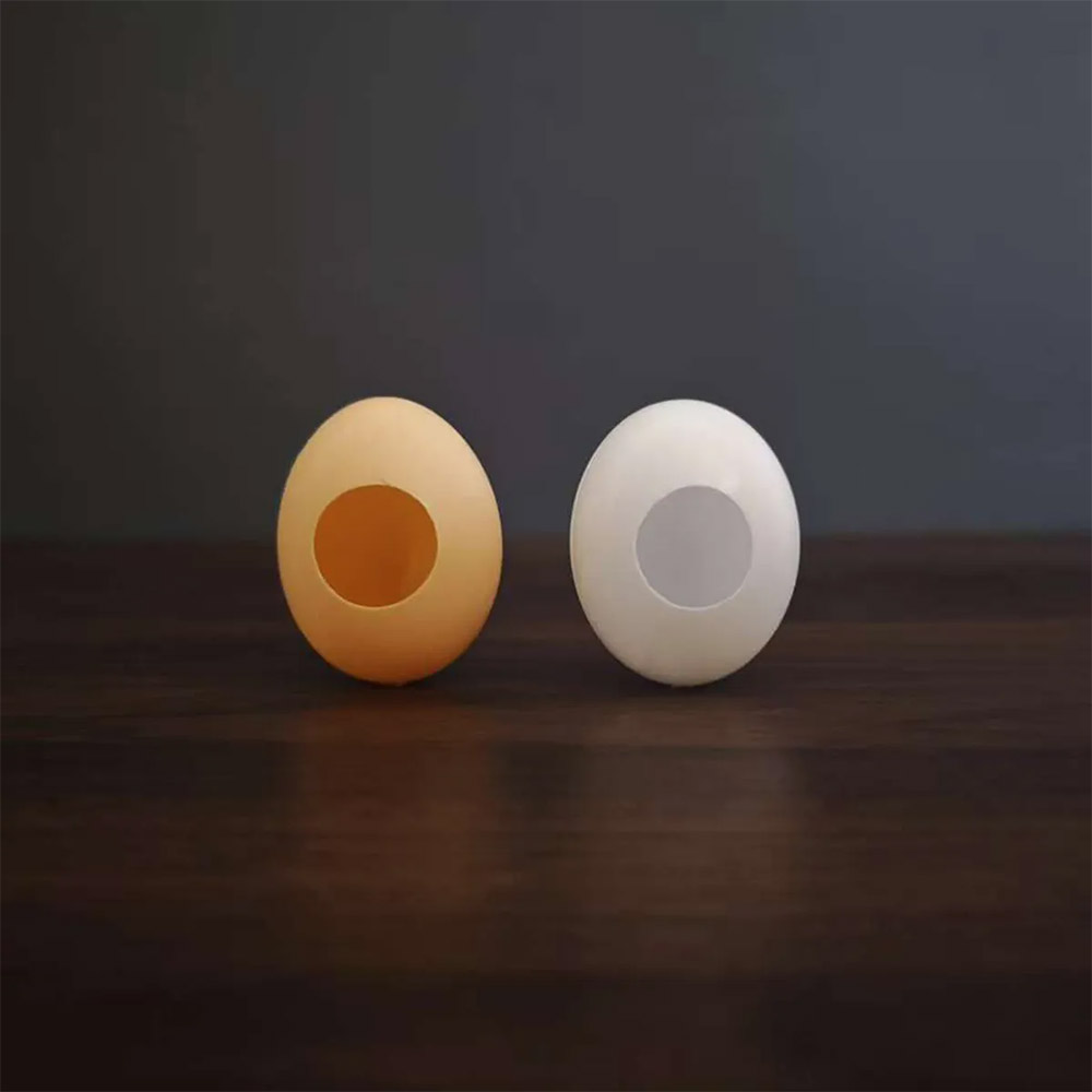 This time, when he turns the egg around, the hole has disappeared and a red sticker is now in its place. Finally, he peels off the sticker, showing the egg is real, cracks it open, and the yolk and white spill out—pure astonishment!