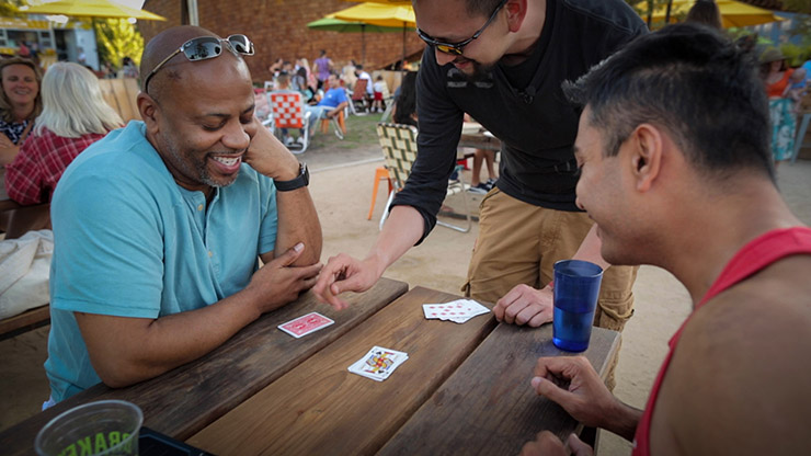 JUMPING JACKS is Daryl’s special routine and handling for the classic $100.00 Ace Assembly. The four jacks are placed face up on the table and each is covered with three extra cards from the deck. One packet is placed in the spectator’s pocket for safekeeping. One at a time, the spectator causes the remaining three Jacks to magically vanish from the table. Each Jack is clearly seen until the very moment before it vanishes. In a surprise finish, the spectator removes all four Jacks… from his own pocket!