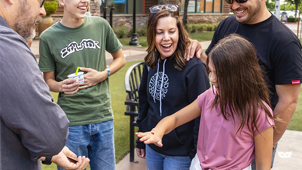 You start by showing three logs “from your garden” to reveal that there are three lucky ladybugs on the back. Then, while in the spectator’s hand, one of the ladybugs mysteriously ‘flies away’. What happens next is literally an ON the hand miracle. Your spectator waves their hand above the logs, and to their delight, the ladybug has magically returned!