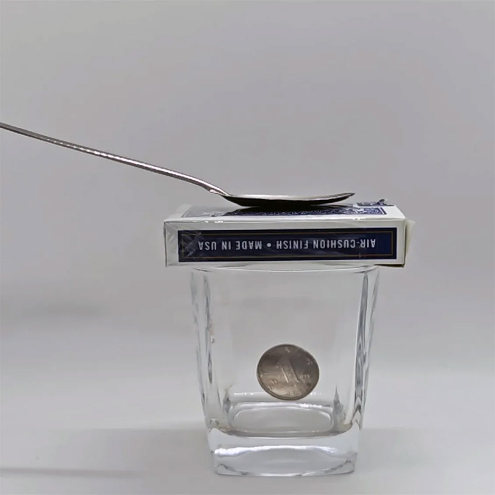 • Metal spoon appears to balance by itself