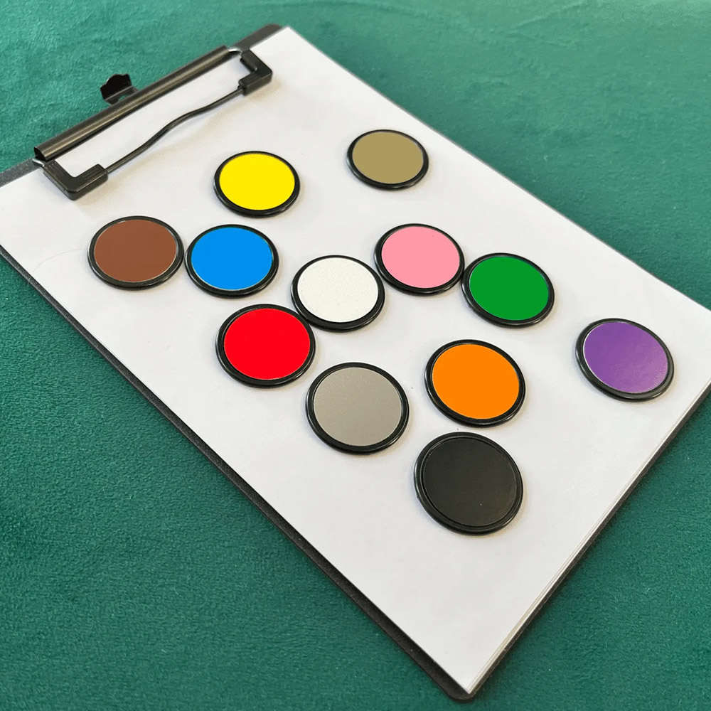 The magician placed twelve colors of chips on the drawing board, and the front and back of each color of chip were exactly the same. The audience randomly chooses a chip and flips it over. The magician empties and recycles all the chips into a bag, and can guess the color of the chips chosen by the audience and write it on the drawing board.