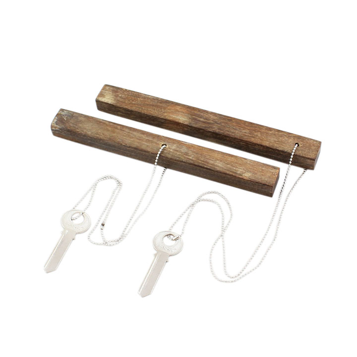 ABSOLUTELY KILLER Effect! Once you see Mystery Key Holder demonstrated, you'll want it immediately. There have been numerous tricks that a hole is transferred from one place to another place. Mikame has taken the idea to an impossible level ahead! Display a wood rod with a hole in one end. A key chain is hanging through this hole in the end rod. Without warning the hole moves to the center of the rod! The actual hole and chain move to the center of the rod. Now pull the chain up and down – It has actually moves! You decide to move the hole back to the end of the rod. It goes back to the end of the rod! Hand the rod out for examination.