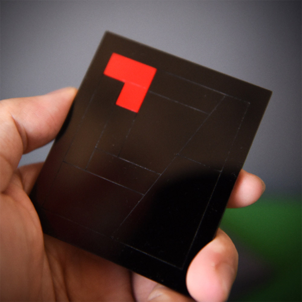 The performer shows a set of puzzles and all the puzzle pieces are placed in a frame that entirely filled. He pours them out of the box and solves the puzzle. Then he takes out a red square piece and adds to the puzzle. After moving, the puzzle is also solved! And he shows an extra red rectangle piece (larger than the previous one) and says there is one more piece… After moving, the puzzle is solved again!
