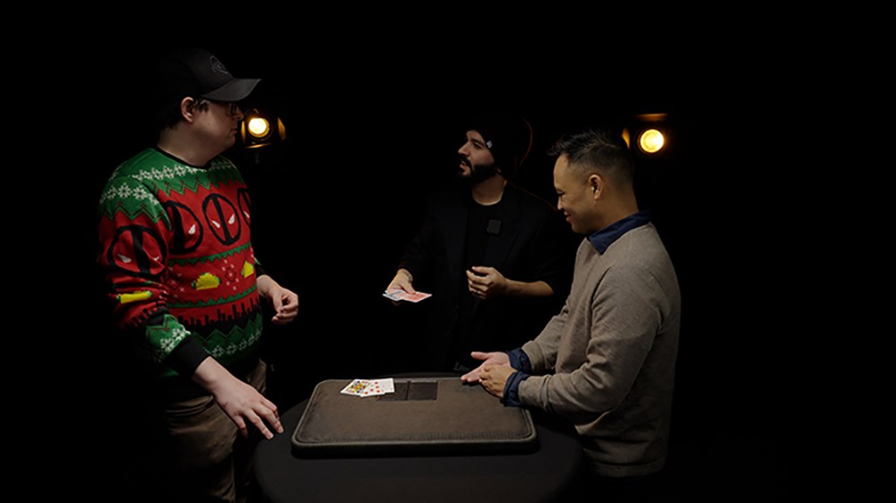 You begin by openly displaying four red-backed cards. They’re counted slowly, cleanly, and placed into the hands of a spectator. No suspicious moves, no extra cards, just four cards, held securely by your helper.