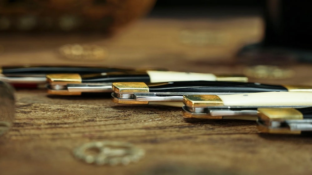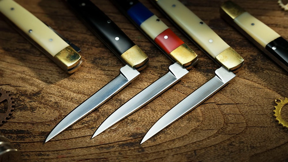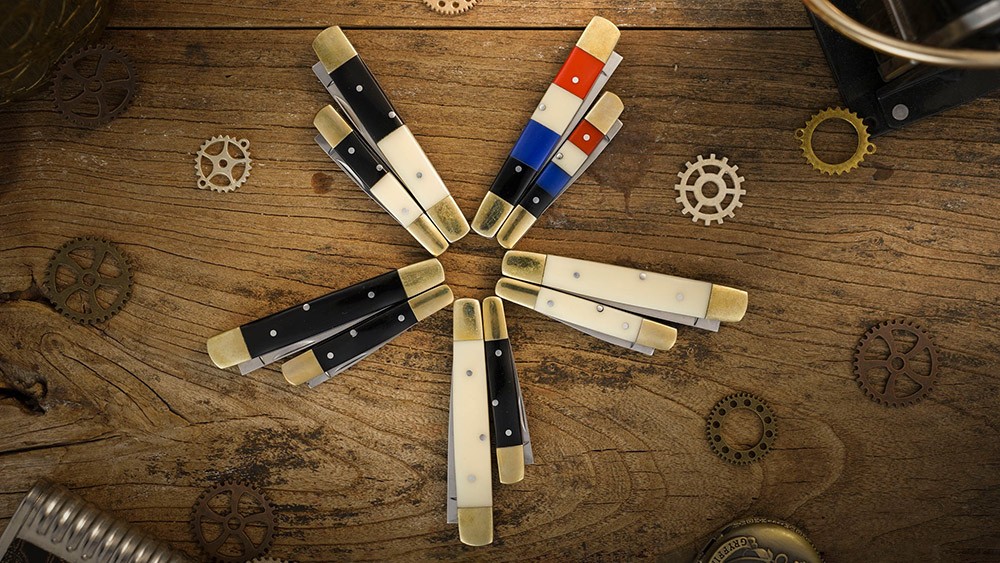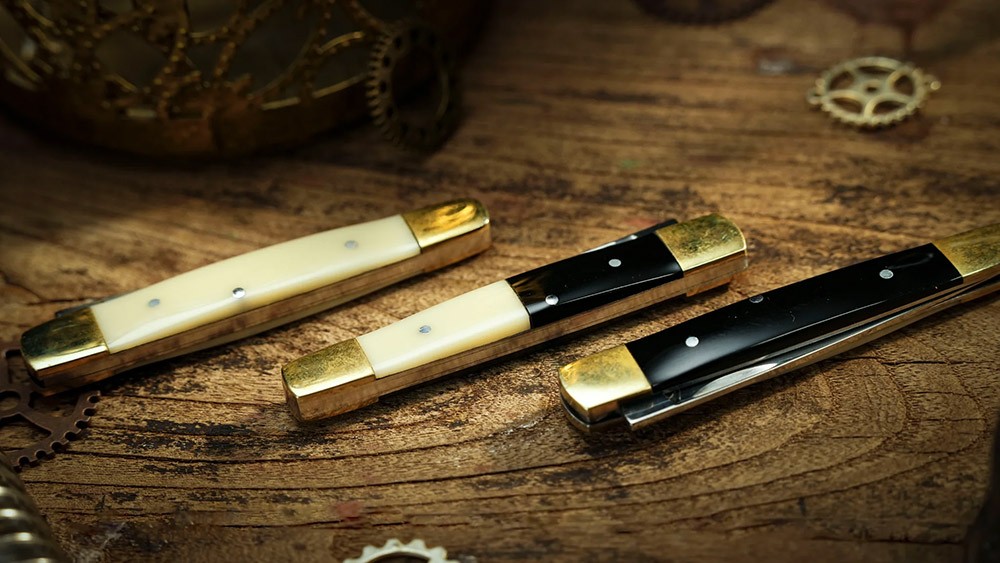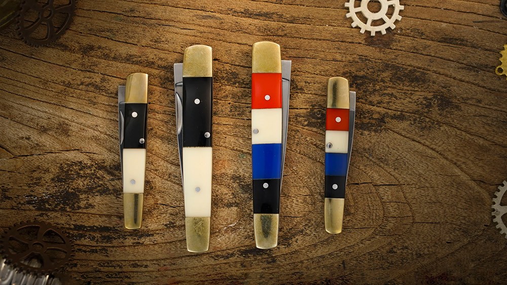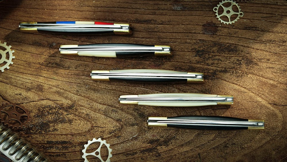 - Penknives: Iron blade with stainless steel embedded resin acrylic handle