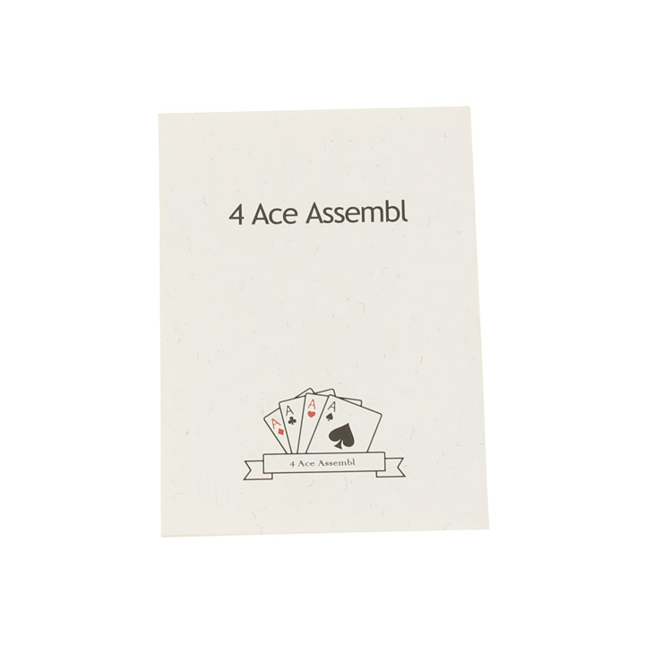 The performer takes out the four aces. One ace is designated as the "Leader ace". Three cards are layed on top of each ace.