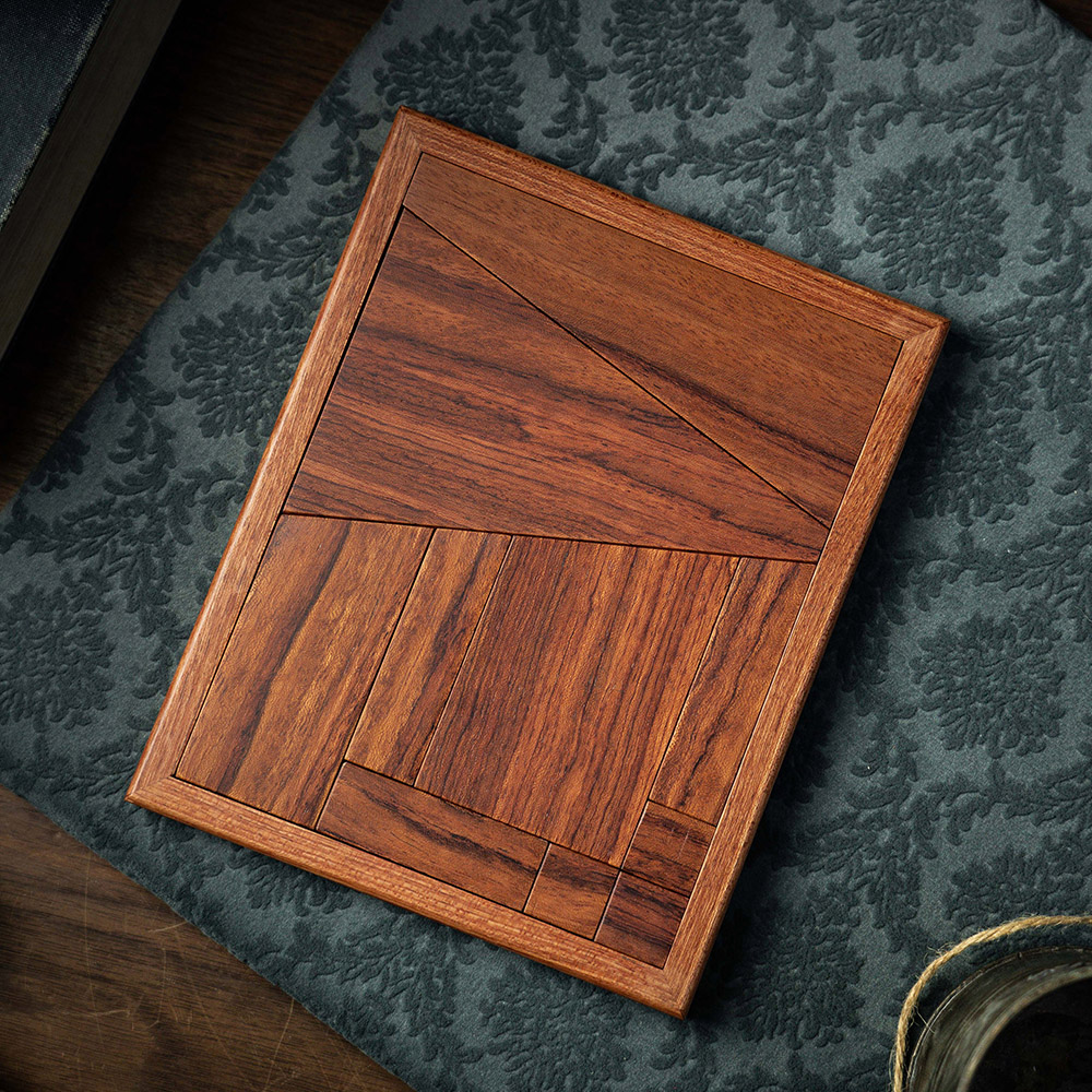 In the end, even after removing the pieces, the surface area of the entire block puzzle remains the same and still fits perfectly in the wooden frame it came out of.