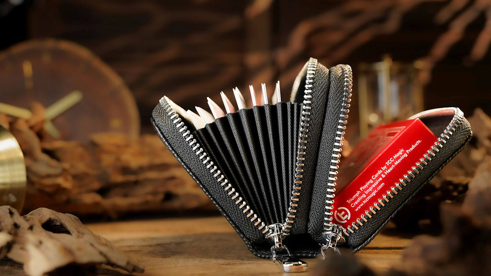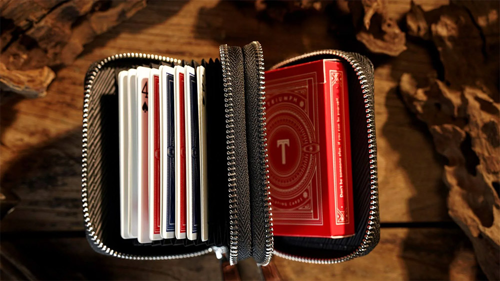 The accordion-style structure ensures that all your packet tricks are instantly visible and accessible the moment you open the bag. Featuring 10 dedicated slots, it holds over 50 cards, along with an extra compartment designed to fit a full deck, perfect for versatile storage needs.
