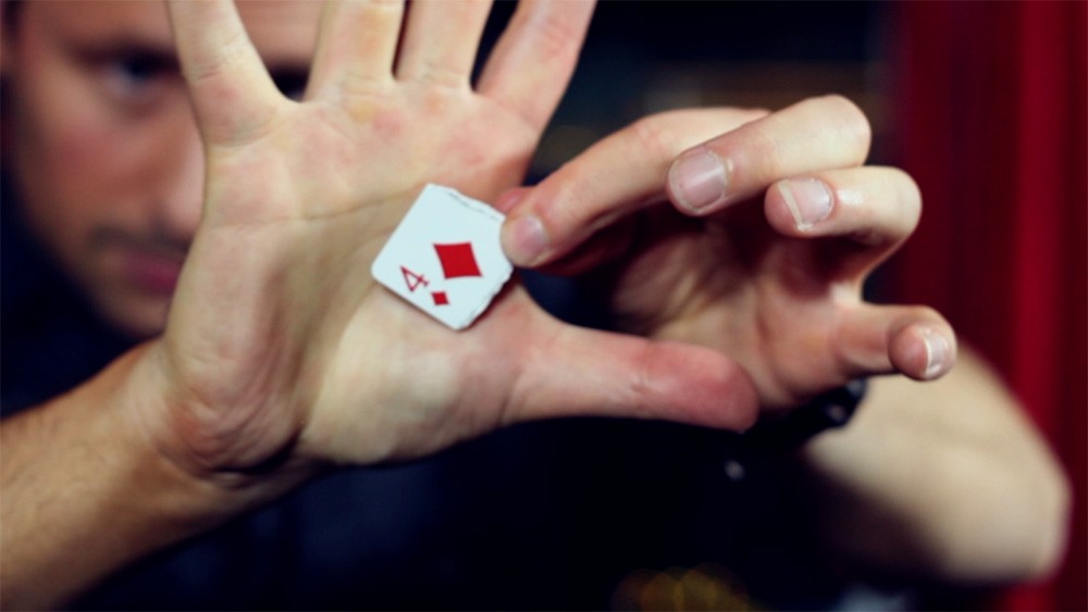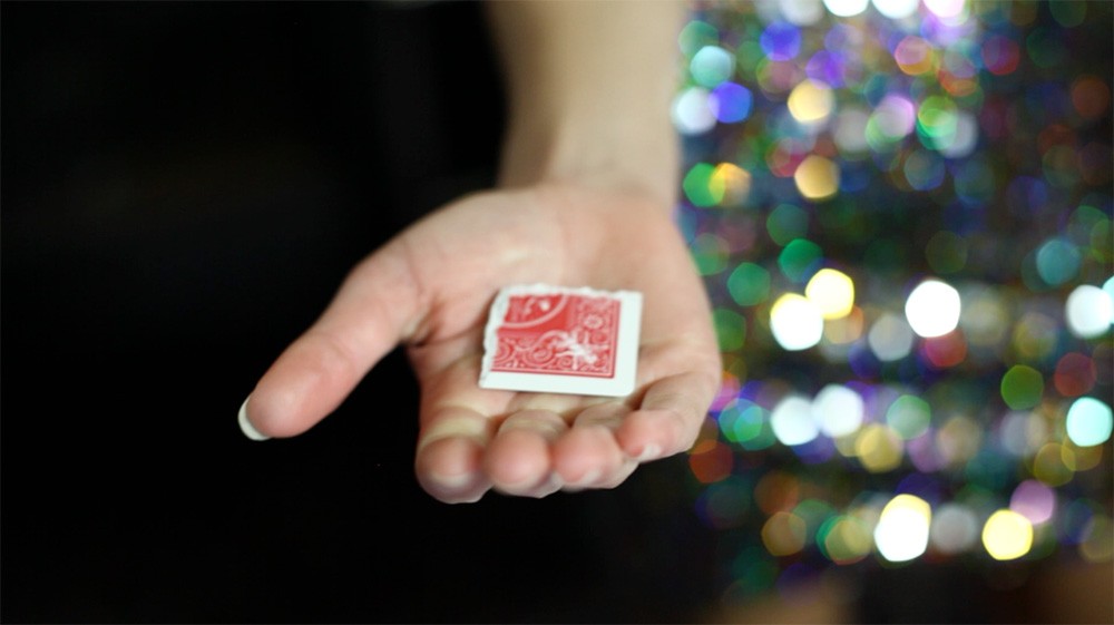 Here’s the trick: You tear up a 4 and put a corner of the card in your friend’s hand. Then you take a step back and tear up a 7. You hold a corner of the 7 between your fingertips…and VISUALLY CHANGE IT INTO THE CORNER OF THE 4. Then your friend opens up her hand…AND SHE’S GOT THE 7.